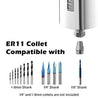 ・精密加工:カスタマイズされた1/8”ER11コレットとナットが付属しており、ビットが確実に保持され、コレット内で正確に中心に配置されます。毎回正確な結果を得られます。シャンク径は1-8mmから1/4”まで対応していますが、1/4”と1-8mmのコレットは含まれていませんのでご注意ください。