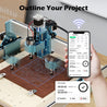 - 簡単なGコード転送: 当社のWiFiモジュールとアプリを使用すると、Gコードファイルのダウンロードと共有がこれまでになく簡単になります。オンラインGコードリソースにアクセスしたり、友達とファイルを共有したり、電話に直接保存してCNCマシンにワイヤレスで送信してシームレスに実行できます。